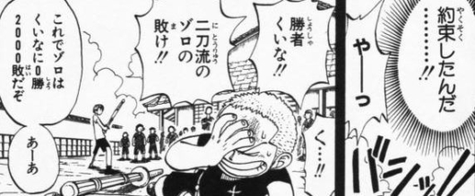 ゾロがそこまで「約束」にこだわった理由は、幼少期のある道場での出来事があった。道場の師範の娘くいなとの約束である。