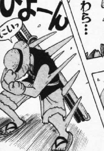 なんか最初の頃はこういったルフィのゴム体質の特徴を描写した場面が結構描かれていたけど、面白いよねコレ。