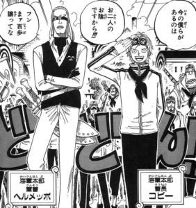 ま、ルフィとゾロはともかくコビーとヘルメッポだよ・・・。
